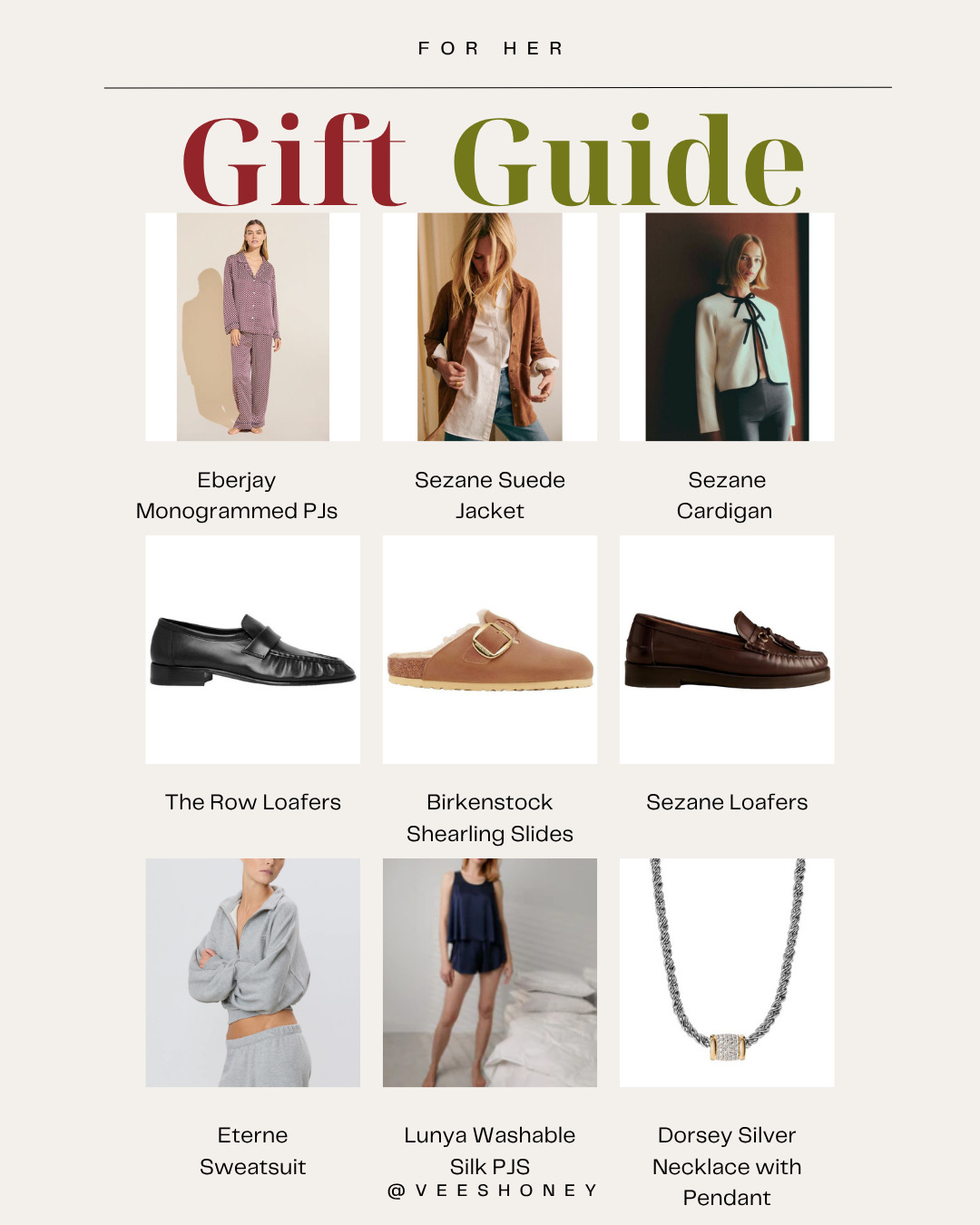 I love the holidays. I love the lights, I love the tastes, I love the smells, I love the cheer. Everything about this time of year lights me up inside. I also love giving and receiving gifts. Gift giving is one of my top love languages, but I typically get stumped on what to get. It’s either too overwhelming or I can’t come up with something said person doesn’t already have. I’m always scouring gift guides and I thought it would make a nice tradition to start creating one of my own. My old gift guide from last year is still fire by the way, but I thought I’d give you an updated one with a different spin. I hope this helps make your shopping a bit easier! Lots of love! Xx V